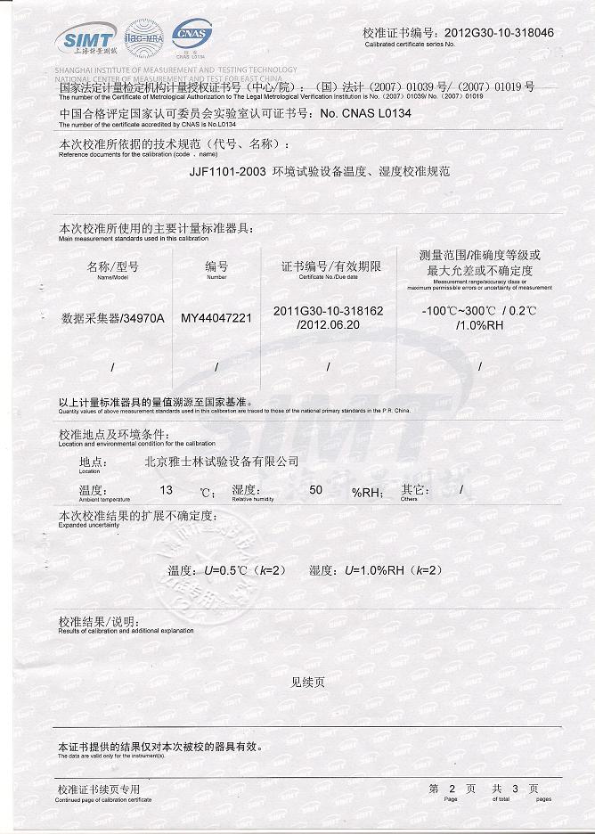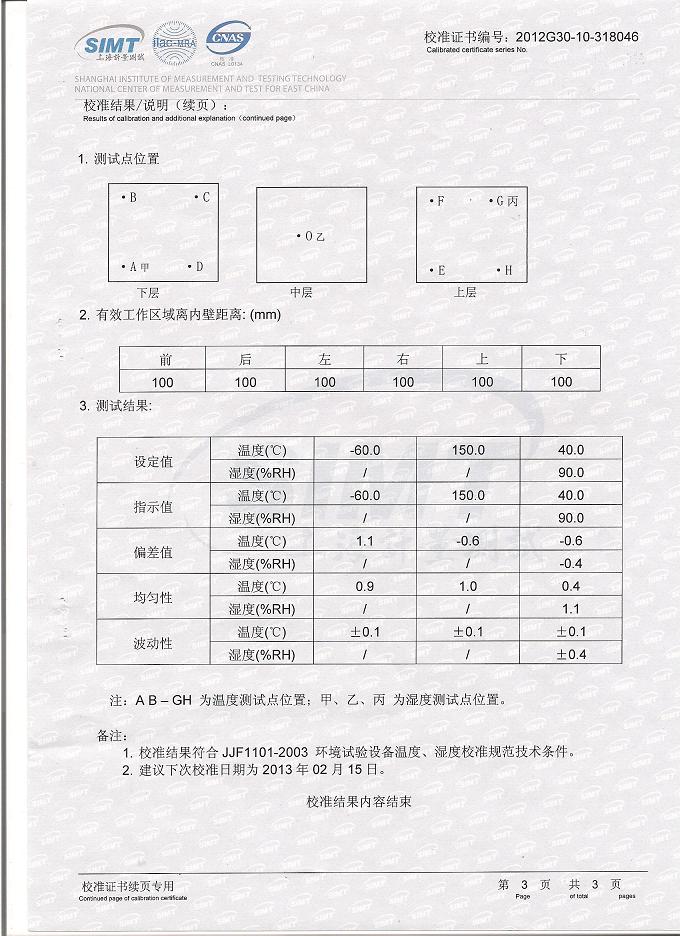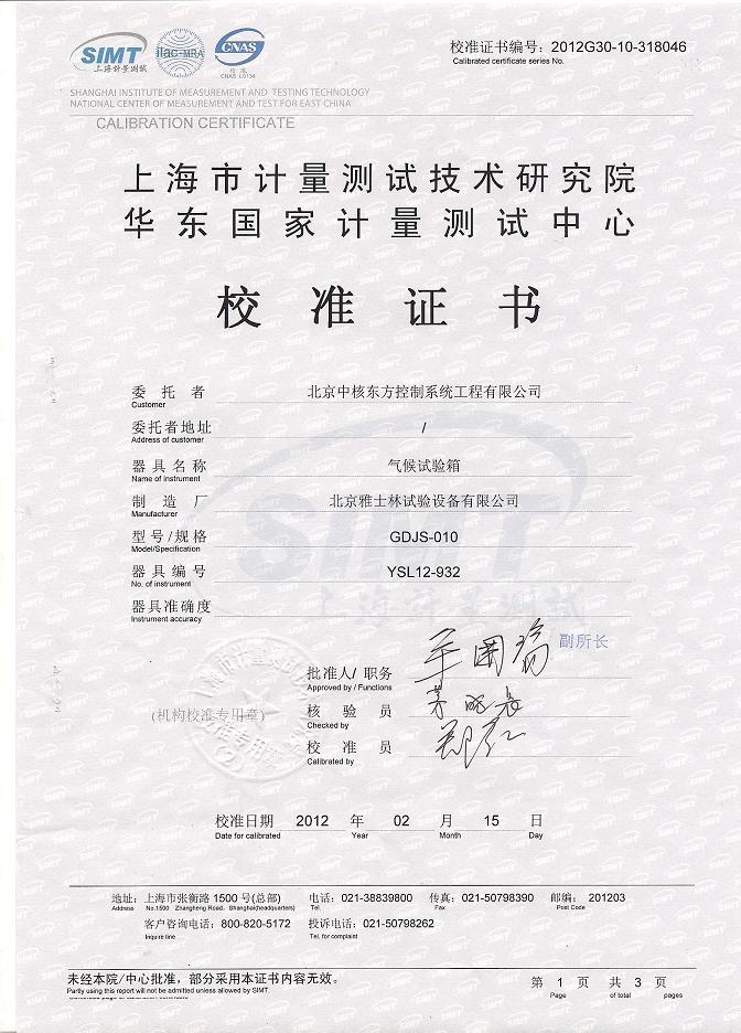 氣候試驗箱校準證書-上海計量院-中核控制2