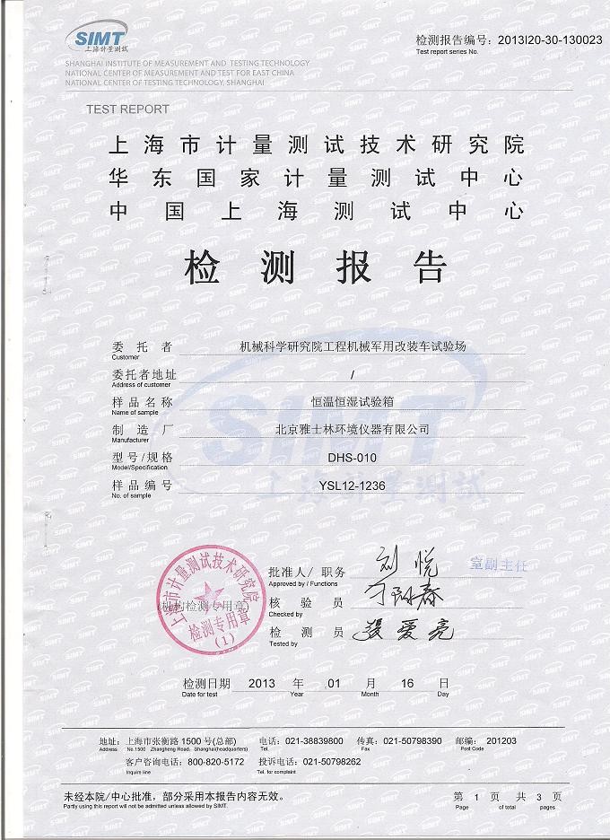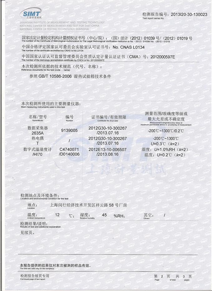 ·恒溫恒濕試驗箱檢測報告模板下載--上海計量院