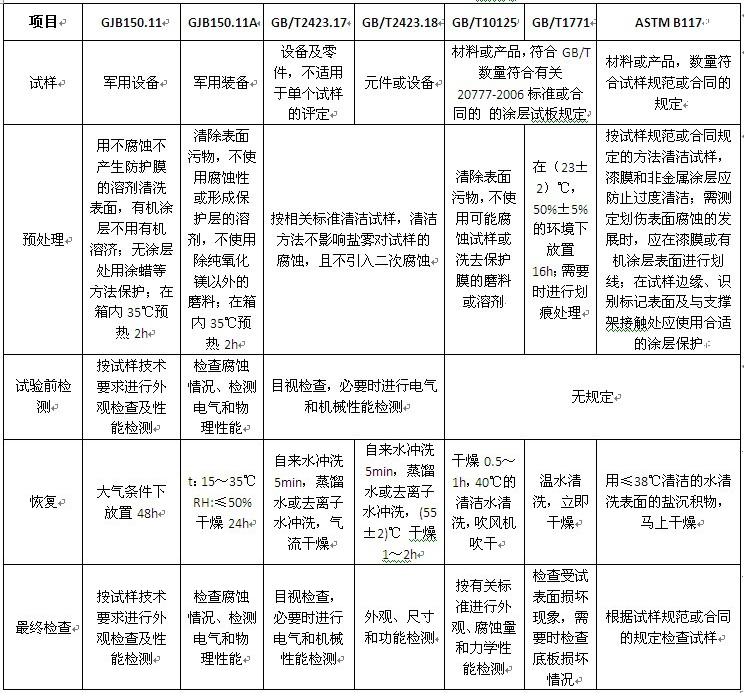 ·鹽霧試驗(yàn)箱不同標(biāo)準(zhǔn)對(duì)試樣處理和檢測(cè)的要求
