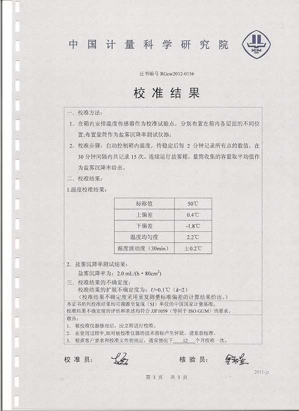 >>鹽霧腐蝕試驗箱校準證書模板下載—中國計量院